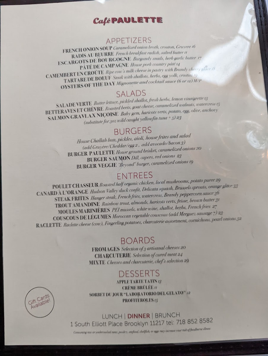 Fingerling potato gratin, raclette cheese, charcuterie, cornichons (ask for the machine, 3-6 people).